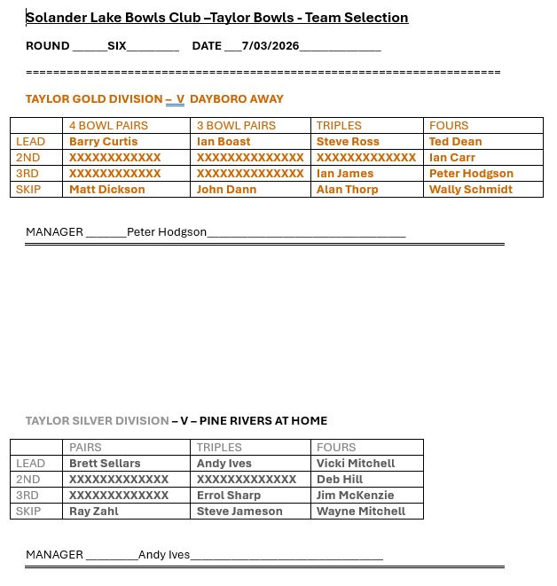 TAYLOR BOWLS STATE CHALLENGE 2026