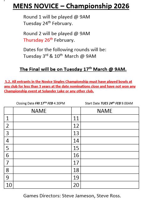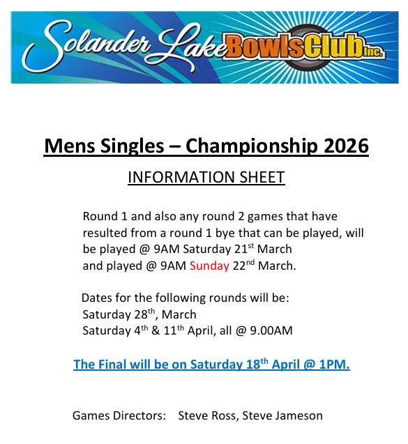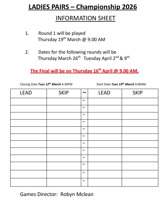 Semifinal Round – 19th February 2026 @ 9.00am.Anthony MacGregor & Wayne Shackell Vs Wayne Stuart & Neil Lethlean.Glenn McCarthy & Tony Grimmond Vs Rod Reilly & Trevor Smith.