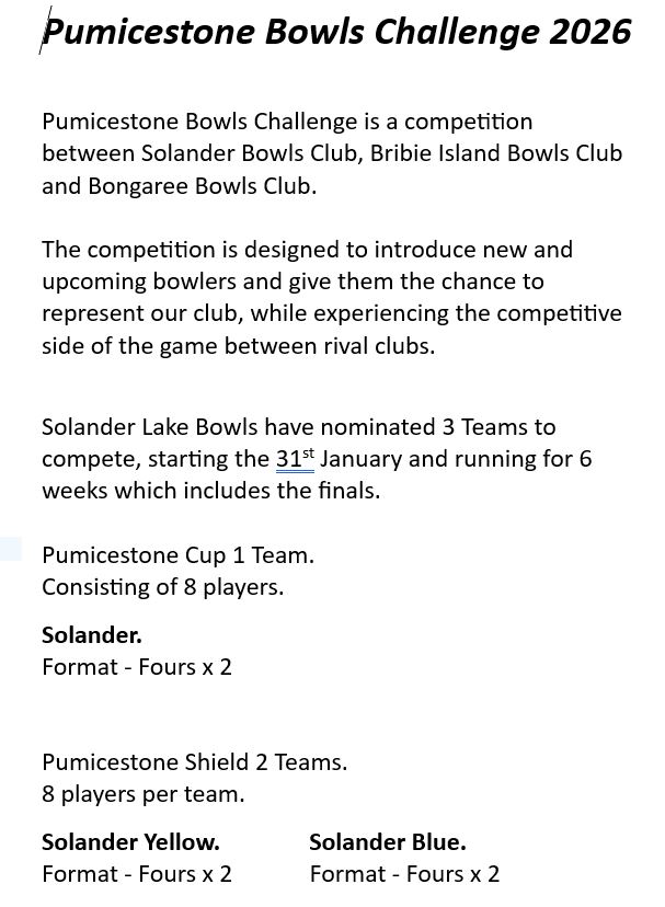 Information regarding the upcoming Pumicestone Bowls Challenge 2026 has been received and posted herewith.