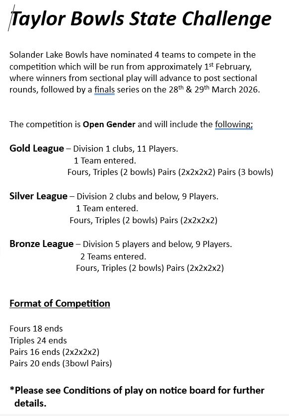 19/10/25 – Taylor Bowls State Challenge 2026.