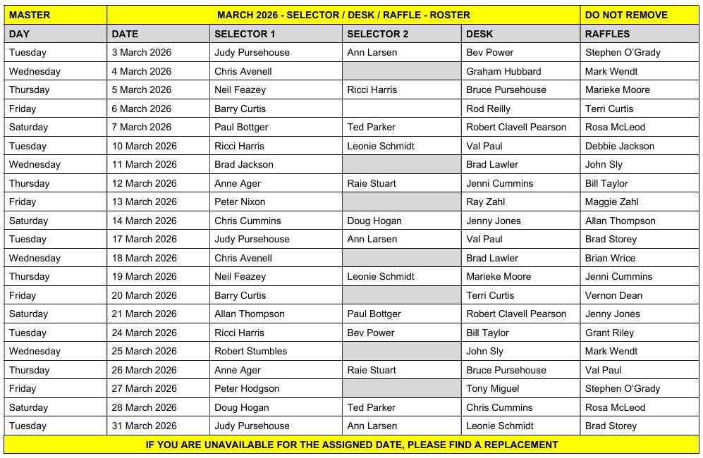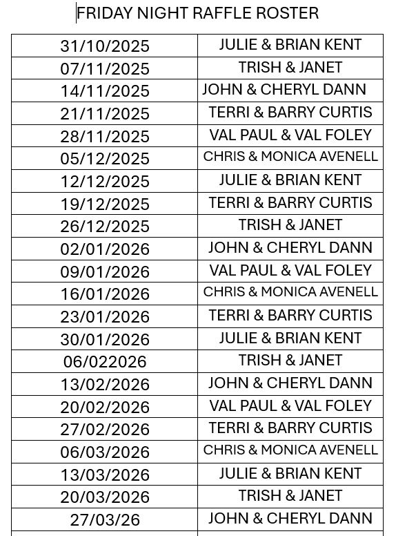 Friday Night Raffle Roster