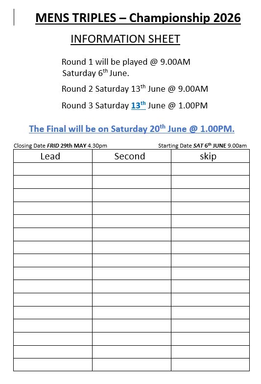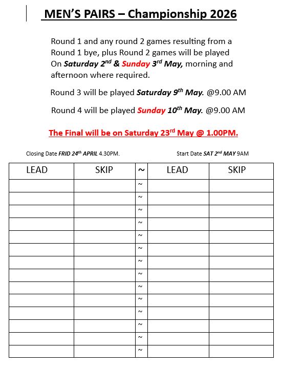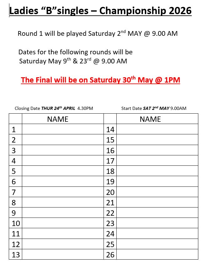 Semifinal Round – Thursday, 23rd April @ 09:00AM.Debbie Hill Vs Dianne Nock.Judy Pursehouse Vs Vicki Mitchell.